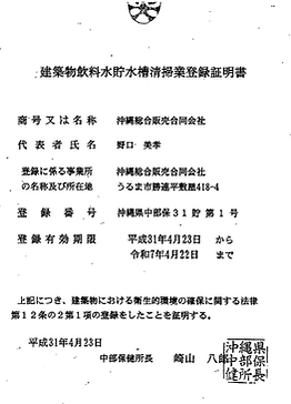 | 業種 | 便利業、清掃業、ハウスクリーニング、遺品整理業、リフォーム、防犯用設備・用品、排水管つまり清掃、水道衛生工事・保守、ミシン販売、印鑑・印章・ゴム印 |